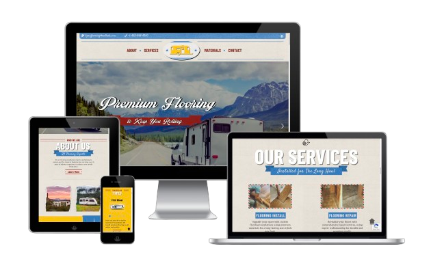 We leaned into the retro theme, designing a visual identity that evoked the spirit of mid-century roadside adventures—complete with textured backgrounds, vintage banners, warm color palettes, and era-inspired typography. the client’s airstream trailer artwork became the heart of the logo, reimagined into a playful brand mark. the custom website was designed to reflect that same retro charm while being fully responsive and optimized for SEO. the result is a one-of-a-kind digital presence that reflects the client’s niche and personality—currently ranking on page 1 for rv flooring searches across alberta.